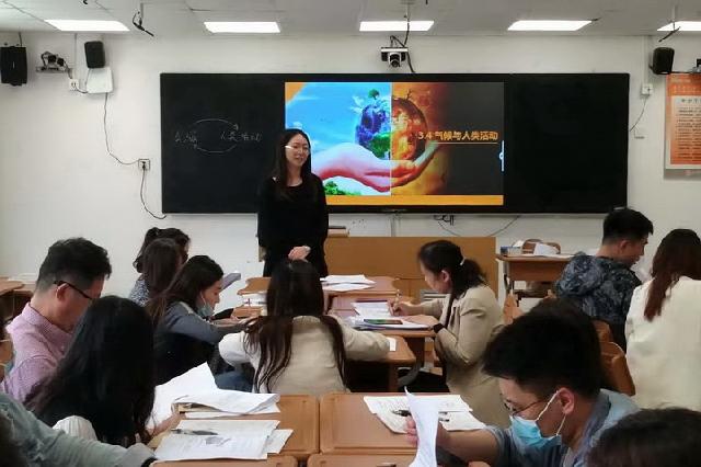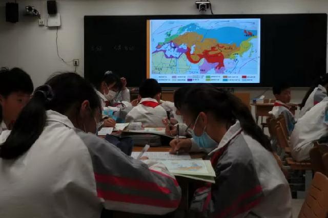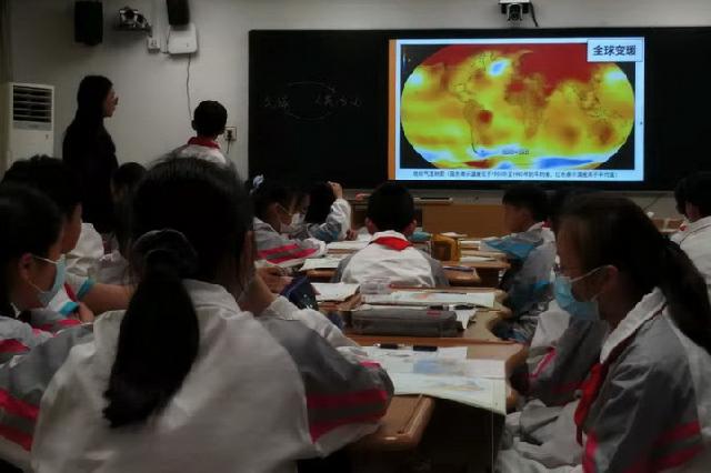 莘光学校的青年教师柴哲源老师执教的六年级地理课《气候与人类活动》,拉开了本次教研活动序幕。柴老师通过不同地区的景观图引出课题。课堂中,她运用社会热点、身边事件等真实情境,设计了“气候与人类活动”、“气候与棉花种植”和“人类活动与气候变化”三项活动。在巩固基础地理知识的同时,从生活实际出发,开阔了学生视野,培养了学生知识迁移的能力。课堂气氛活跃,学生不仅有自我展示的机会,提升了对地理事物的表达能力,还有充足的思考和讨论时间,从多角度思考气候与人类活动的关系,提高了综合思维能力。