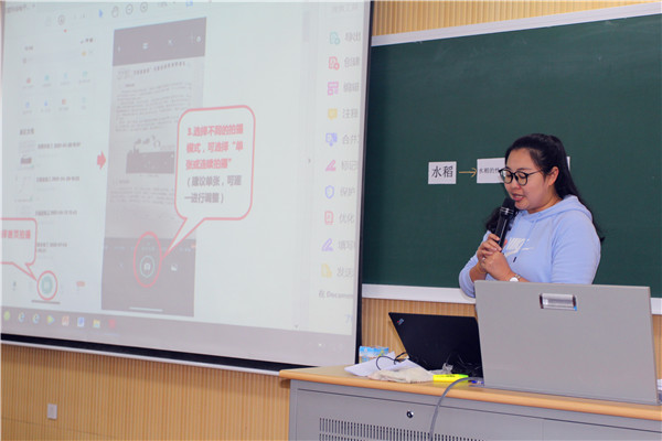 接着是跨学科主题的分组研讨和交流环节。教师们结合各自的跨学科教学实践,分别谈谈做的最好的和最困难的方面,并在组内进行交流。特别是陈婷老师还分享了自己在准备科学课资料中如何高效使用CS扫描全能王,将纸质材料转化为电子稿,应用于课堂教学,提高备课效率。