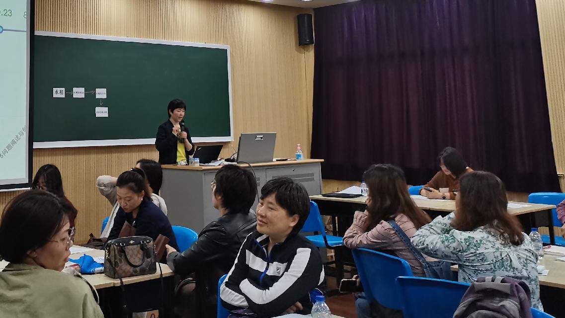 活动首先由上宝中学的青年教师李静婷老师为大家展示了一节九年级生命科学跨学科课堂教学——《奇妙的海水稻》。李老师通过“杂交水稻之父”袁隆平引出课题,激发学生浓浓的学习兴趣。接着,学生们在李老师精心设计的学习情境下,围绕“解决水稻种植的问题”一步步深入地挖掘和探讨。课后,李静婷老师进行了说课和反思,老师们则分组研讨和交流自己的观课收获与想法,并以照“片组汇总”的方式面向全体进行了分享。老师们认为李老师在课堂教学中尤其注重跨学科思维的培养,以崇明东滩为例引导学生辩证思考在上海东滩湿地生态系统推广海水稻种植的利弊,充分展现了学生的分析与质疑能力;聚焦热点话题的设问使地理和生命科学两门学科达到了真正的深度融合,同时加强了对学生情感价值观的熏陶;最后,教师智慧地利用学生自我评价表进行有效评价,提升了学生对自己在跨学科案例分析学习中的全面认识,推动学生自主学习意识。