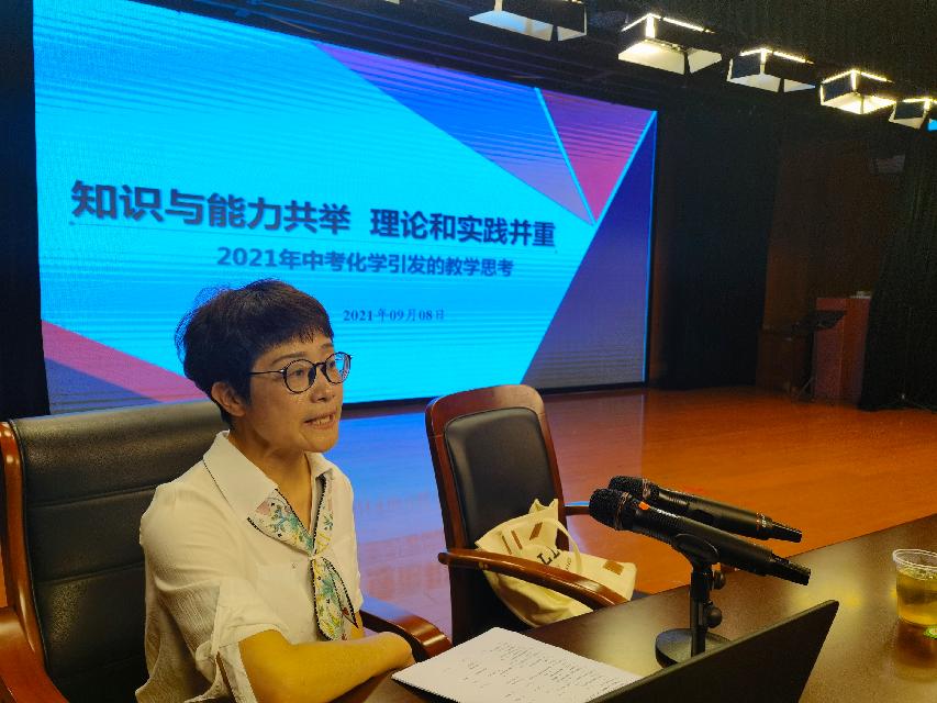 2021年9月8日下午,闵行区初中化学全体教师在教研员程静芳老师的组织下齐聚莘光学校开展新学期第一次研训活动,共同探讨研究新学期“新中考”和“双减”工作背景下的初中化学教研工作。