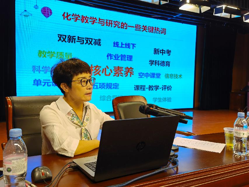 随后,程静芳老师就本学期重点工作进行部署,包括构建特色区本、校本作业体系;关注科学探究、学生体验、学生思维的初中化学实验教学研究;发挥骨干引领作用,促进青年教师专业发展的职初青年教师培育工程等。
