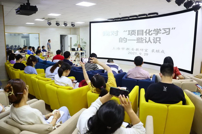 主题研讨活动后,上海市教委教研室裘腋成老师的主题讲座《对项目化学习的认识》在大家的热情期待中开始了。