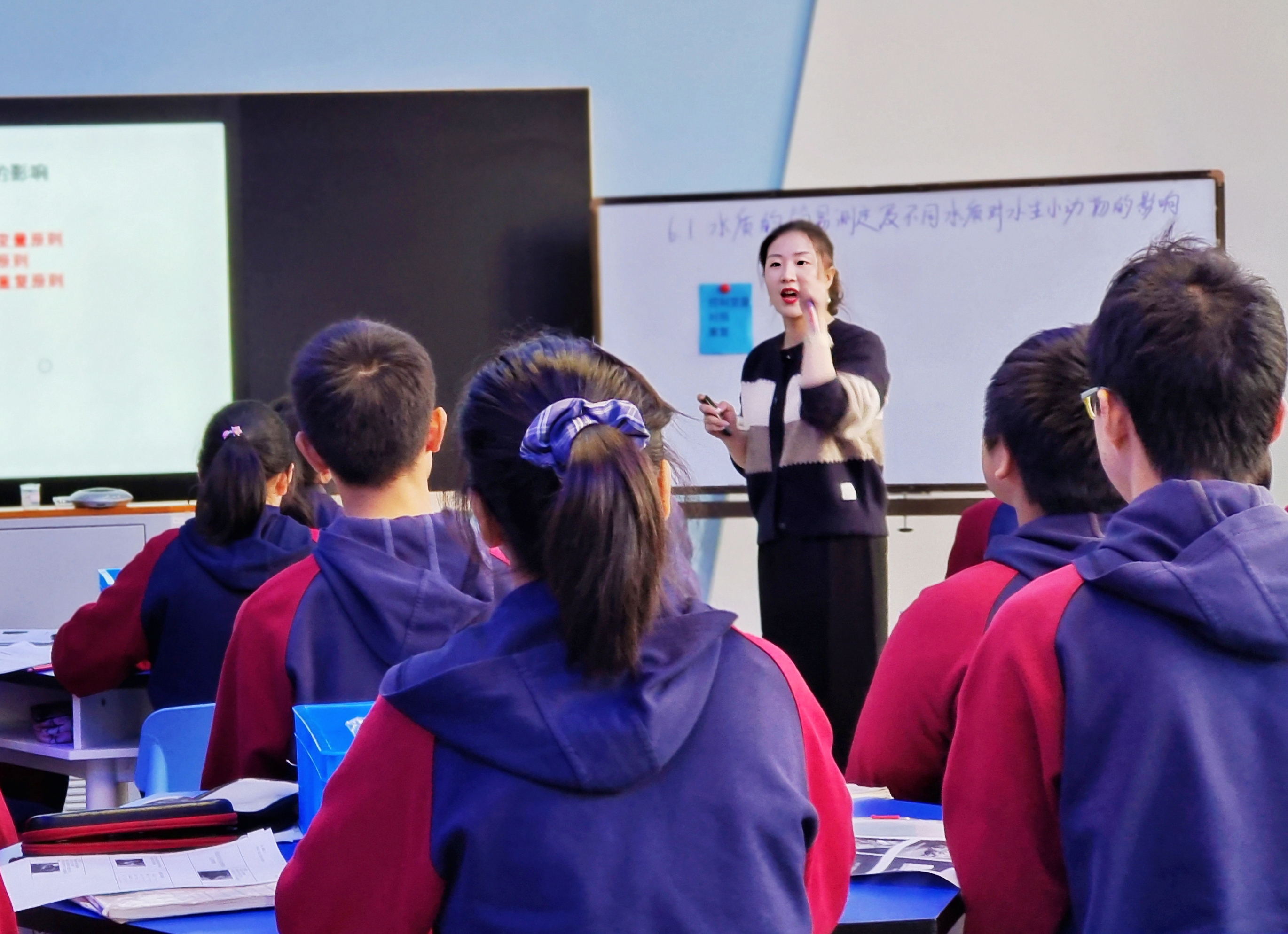 首先,由鹤北初级中学张仪雯老师带来《6.1水质的简易测定和不同水质对水生小动物的影响》一课。张老师通过精心设计三个探究活动,为大家呈现了一堂以学生自主探究,合作学习为主的实验课,有效地落实了学科核心素养。