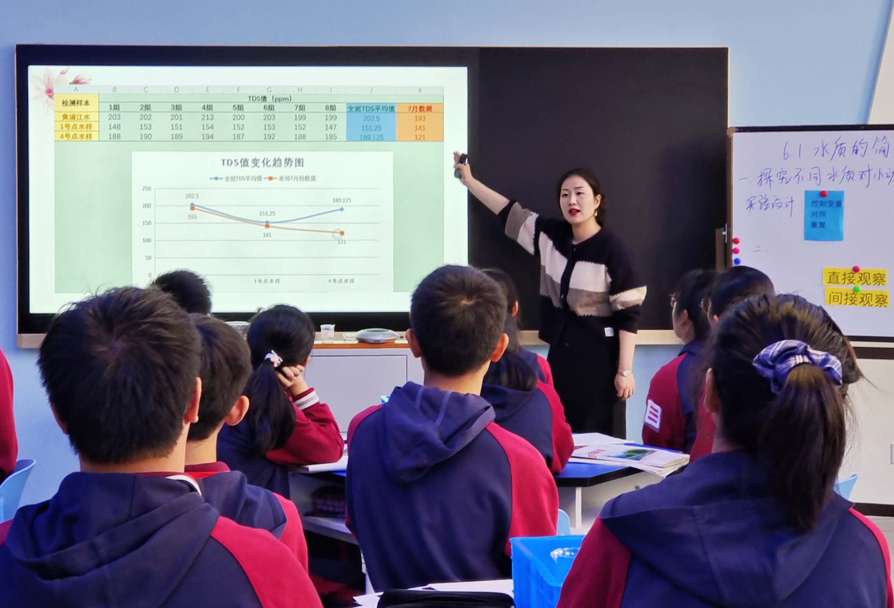 为了更好地呈现这节实验课,张老师在课前设计了学生的探究活动,并对学生的作业进行了初次评价;课上,根据学情和利用创新实验室的优势分别又设计了“实验设计分析讨论”及“水质的简易测定”的探究活动;课后,她要求学生重新修改完善实验设计,完成实验结论,再次提交评价。这样的活动设计,不仅让学生对探究方法和过程更清晰,进一步提示了学生的科学思维。同时,传感器的使用使得水质测定更加便捷。相较传统的PH试纸检测,不仅是从定性到定量观察的变化,也使学生对直接观察和间接观察的优劣体会更加直观、深刻。