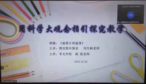 10月20日,闵行区50多位初中科学老师参加了“用科学大观念指引探究教学”为主题的在线教研活动。活动由学科中心组成员莘光学校陈晨老师主持。