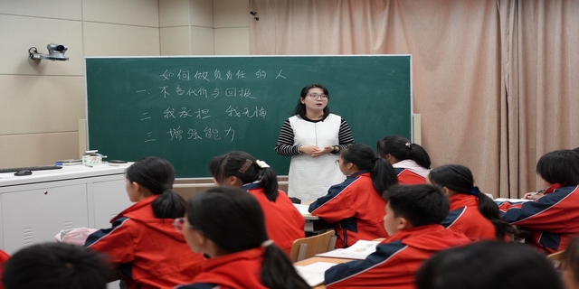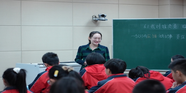 第一环节,七宝三中赵晶老师执教初中道德与法治八年级上学期第三单元第六课第一框《我对谁负责 谁对我负责》。赵晶老师从认识责任、辨析责任、践行责任三个层面层层深入、娓娓道来。赵晶老师通过学生播报近期热点新闻——迪士尼疫情,引发同学们的思考;通过观看抗疫视频,和同学们一起剖析在疫情之下,我们的医护人员、志愿者、外卖小哥、群众以及警察都在承担自己的责任,深刻理解责任并感恩他们的付出。赵晶老师带领同学们反思疫情之下,我们的学生群体主动作为,积极承担作为学生、子女、社会成员以及中华儿女的责任,辨析责任与角色的关系。责任需要践行,通过学生日常发生的情境着手,引导学生积极主动承担责任,将承担责任落细、落小、落实。实验西校黄嘉慧老师执教初中道德与法治八年级上学期第三单元第六课第二框《做负责任的人》。黄老师利用时政新闻和《浦东机场一线防疫工作人员》视频资源,通过问题设计层层递进,深切感悟正是因为各行各业人员勇担责任,我们的城市才能安全、温暖。紧接着小青队长责任的案例分析,引导学生在互动分析中明白做一个负责任的人需要不言代价与回报,无悔承担责任,同时还需要提升自身素质和能力。最后反思我的责任,由远及近,鼓励学生积极主动承担责任。