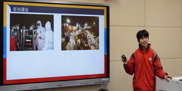 第二环节,赵晶老师和黄嘉慧老师分别进行了说课,赵晶老师对本单元进行教材分析、单元学科核心素养、单元目标、单元结构、单元知识框架等,从单元教学设计视角分析教学设计,整体把握教材。黄嘉慧老师分享自己在备课过程中的点点滴滴,从课堂导入的素材选择,到浦东一线防疫人员、小青队长的责任到我们自身的责任,将教材资源合理整合。