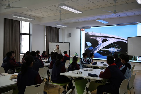 由我校王沁怡老师上了一节课题为《垂径定理》的公开课。王老师通过情境引入、垂径定理的探究、垂径定理的应用、小结及拓展四个环节紧紧围绕着教学目标展开教学。她由赵州石拱桥的介绍引出,让学生们带着问题进行今天的学习,通过学习解决求赵州石拱桥的半径问题。孩子们首先利用圆的轴对称性,画出对称轴,随后画出圆上的一条弦,使其也关于对称轴对称,通过孩子们的动手操作,得到发现,随后验证发现,最后得到垂径定理,图形语言、文字语言、符号语言,三种语言在黑板上清晰呈现。通过对定理的辨析,更加深了孩子们对概念的理解,紧接着进行定理的应用,由浅入深,最后对一开始问题的提出加以解决。整节课的教学活动是非常顺畅的。