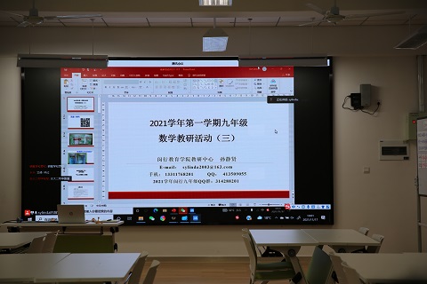 2021年11月17日下午,闵行区九年级数学第四次教研活动在七宝中学附属闵行金都实验中学隆重举行,本次活动的主题为“厘清概念,夯实基础,拓展创新”。 活动由学院中学部主任兼教研员孙静贤老师主持。梅中联盟校:梅陇中学、罗阳中学、晶城中学的九年级数学老师,以及七宝金都的全体数学教师参加了此次线下活动,区其他学校九年级教师参加了线上活动。