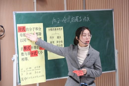 第一堂课由浦江一中蒋丹老师执教,授课内容为《分式的基本性质》,结合学生的情况,因材施教,教学设计清晰流畅,教学重难点突出。采用了电子书包的授课方式,通过画笔、拍照、思维导图等形式呈现了一节生动的数学课堂。通过电子书包推送功能,教师可以及时了解学生对知识的掌握情况,有针对性精讲精练,提高了课堂效率。