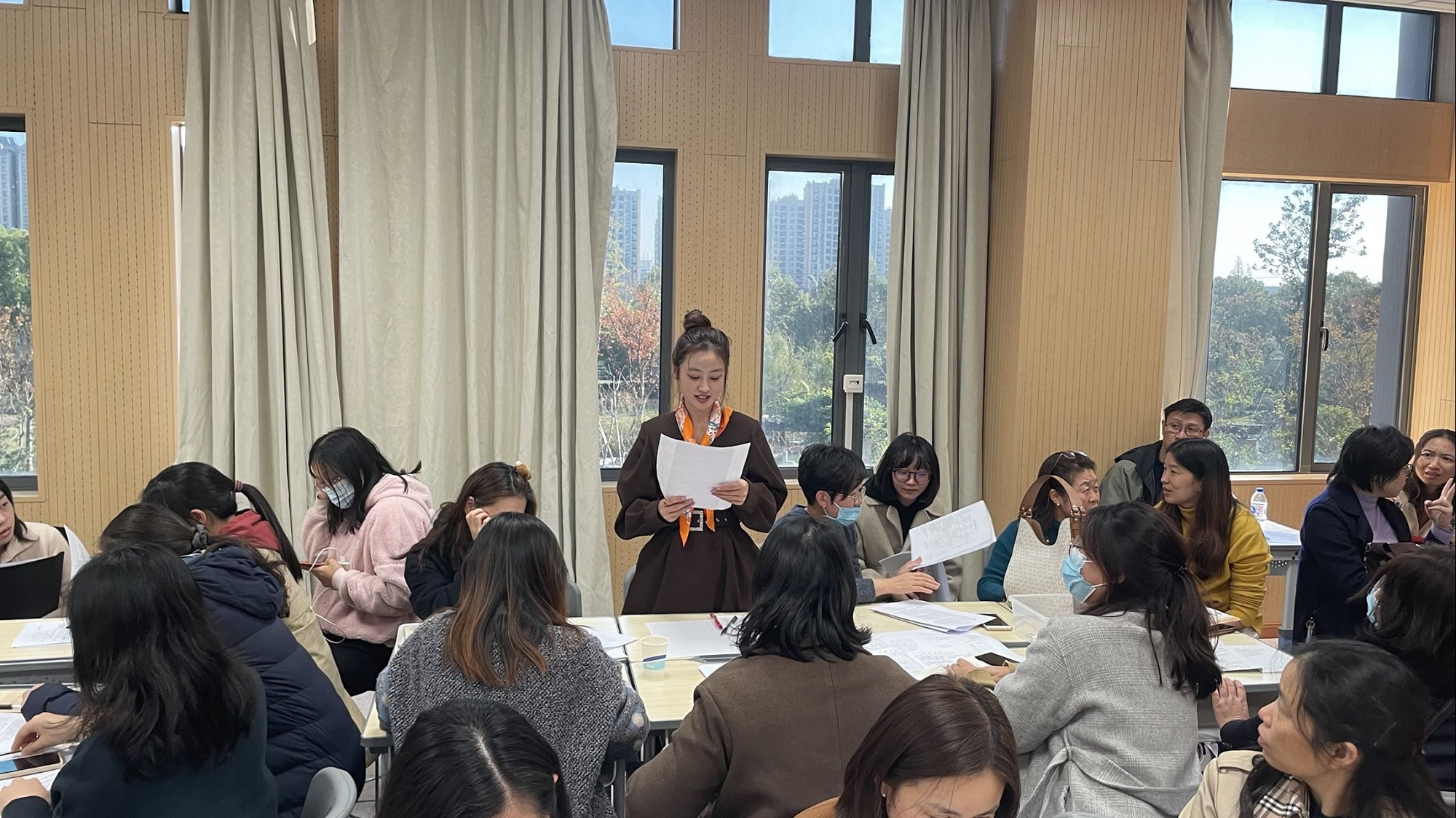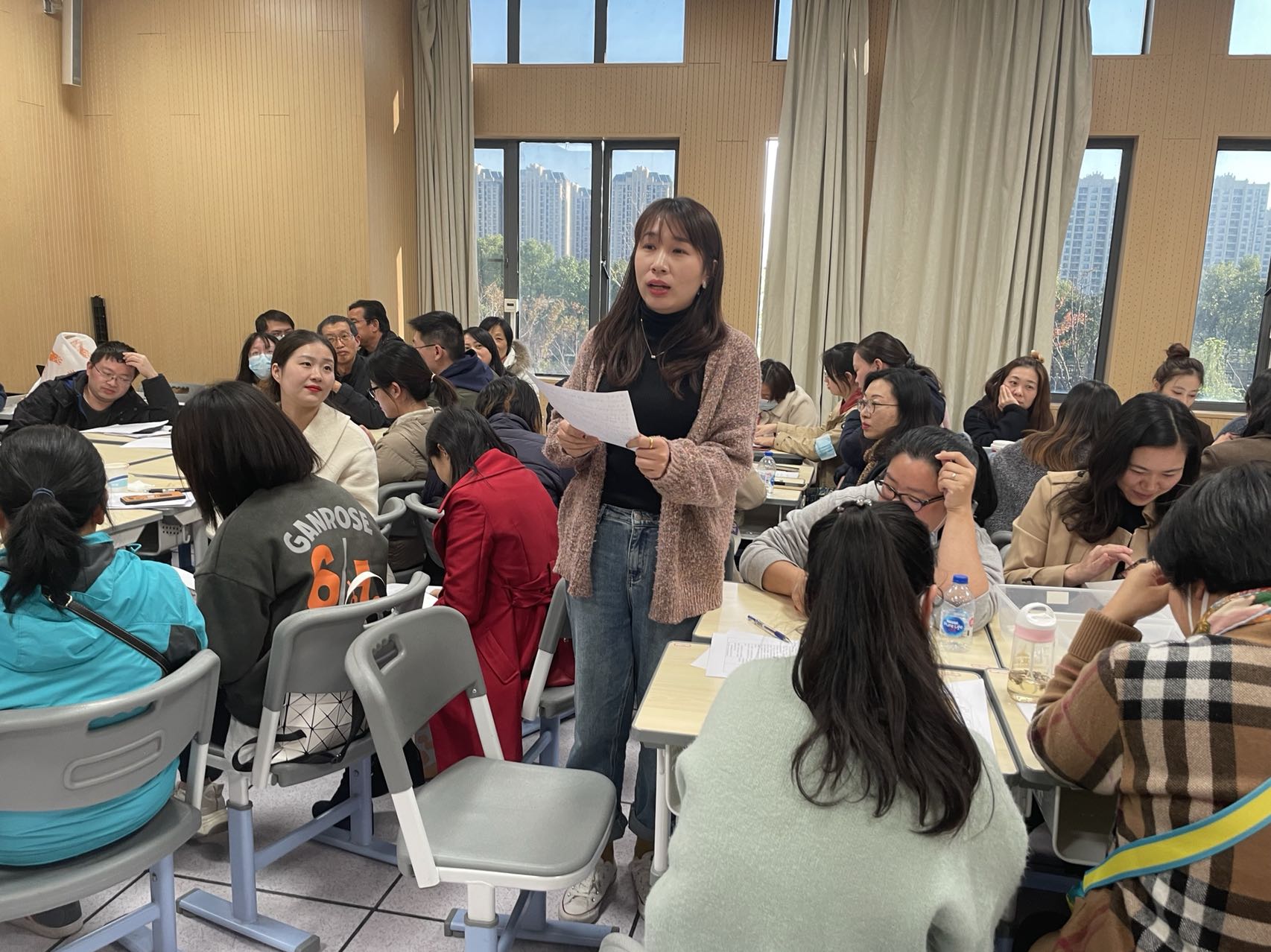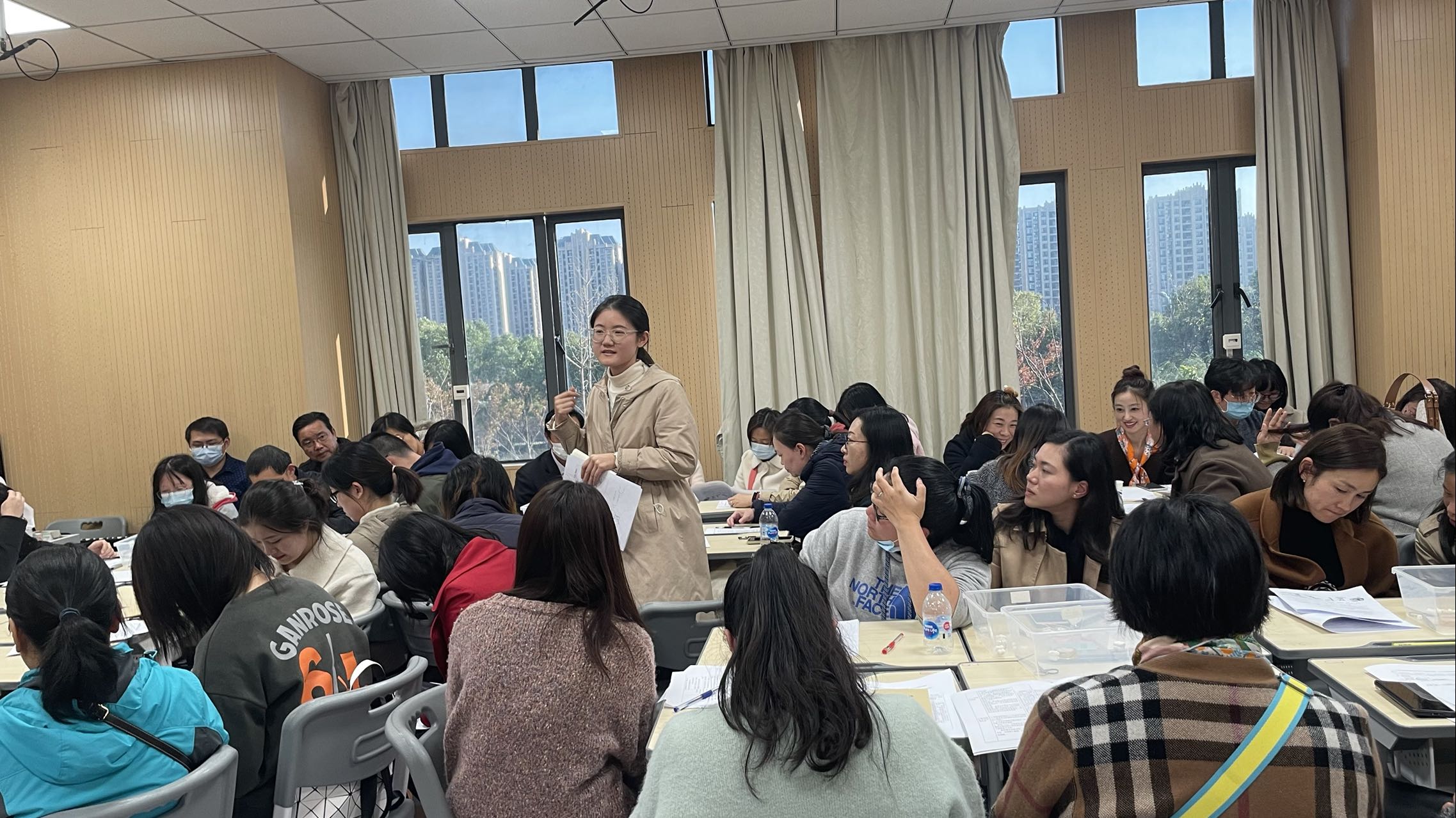 接着,各片组的生命科学老师进行了分组研讨,整个研讨氛围热烈愉快。随后各组代表分别分享了小组老师们的想法和建议。老师们肯定了本节课基于真实问题情境的整体化教学设计的合理和有效性,对于新颖的教学活动也兴趣浓厚,提出了改进的几点想法。最后教研员戴赟老师进行了总结点评,戴老师从理论上向大家解释了教学中模型使用的几点原则,使大家更加明确如何使用教学模型,也从教学基本要求、学情等方面阐述了本节课在设计和教学中老师们需要明确的方向。