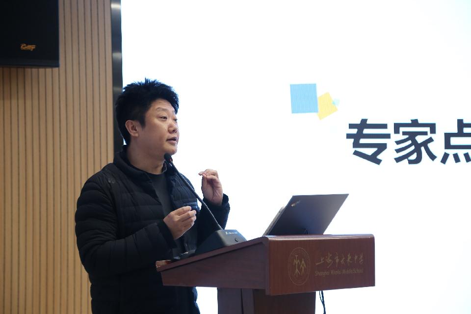 上海市教委教研室劳动技术教研员管文川对本次活动进行了点评。他指出美术学科偏重设计,劳动技术学科注重制作,将两者融合在完整项目中不仅可以为当下义务制教育减负还可以发挥学生的综合性能力,可见学科融合有非常重要的地位。管文川老师提出在学科融合的路径中,要注意加强知识线索,关注真实情境的创设,以及注重学科融合过程中资源的调度。