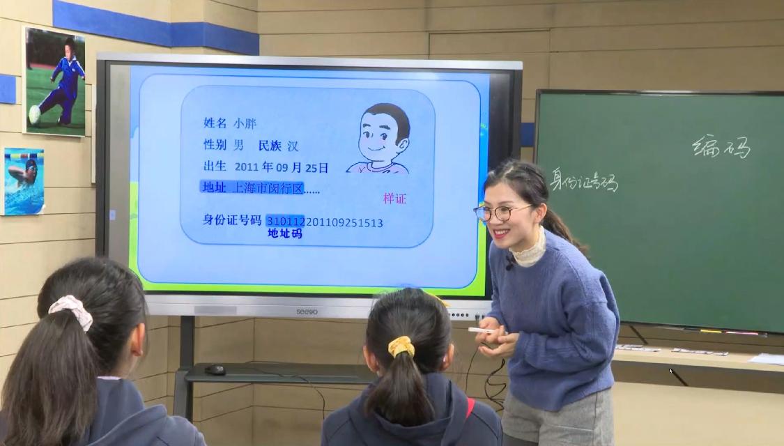 活动首先为观课环节,来自闵行区实验小学的朱黛禕老师执教了一节五年级数学课《编码》。这是一节小组课,由1名随班生,2名学困生,1位助学伙伴组成。本节课的内容,相对其他数学知识点更贴近学生的生活实际,学生也比较感兴趣。朱老师针对随班就读学生和学困生的学业评估情况,在课堂上采取了针对性的教学策略,如:自制小视频解读身份证编码规则以便于学生理解;选用学生自己的身份证来探究更贴近学生实际;运用板书强化学生认知;分层作业设计帮助学生有效巩固新知等,多样的教学方式帮助学生更好地参与到学习中。