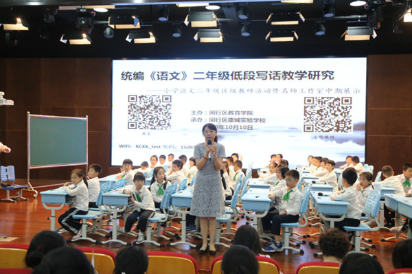 2019年10月10日下午在上海师范大学康城实验小学举行了“小学语文二年级区级教研活动暨名师工作室中期展示”活动,以“统编《语文》低段写话的教学研究”为主题,执教老师为景洪春名师工作室的陆超宇老师和浦江三小的解菊香老师。本次活动由景洪春老师主持,还特别邀请了华东师范大学教育学部的叶丽新副教授开展专题讲座。