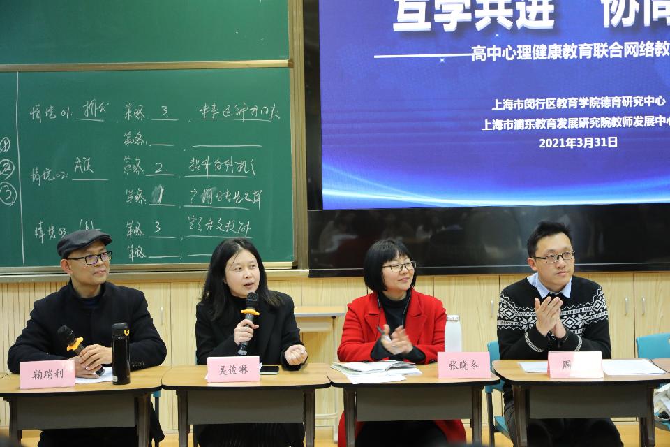 2021年3月31日周三下午,闵行区和浦东新区高中心理健康教育联合线上线下教研活动在华东师大二附中闵行紫竹校区举行。浦东新区高中心理健康教育中心组老师、闵行区第四届鞠瑞利中学心理名师工作室成员、闵行区全体高中心理老师参加此次线下教研活动,浦东新区全体高中心理老师同步观看网络直播参加了此次线上教研活动。线上线下共有130多人参加本次教研活动。