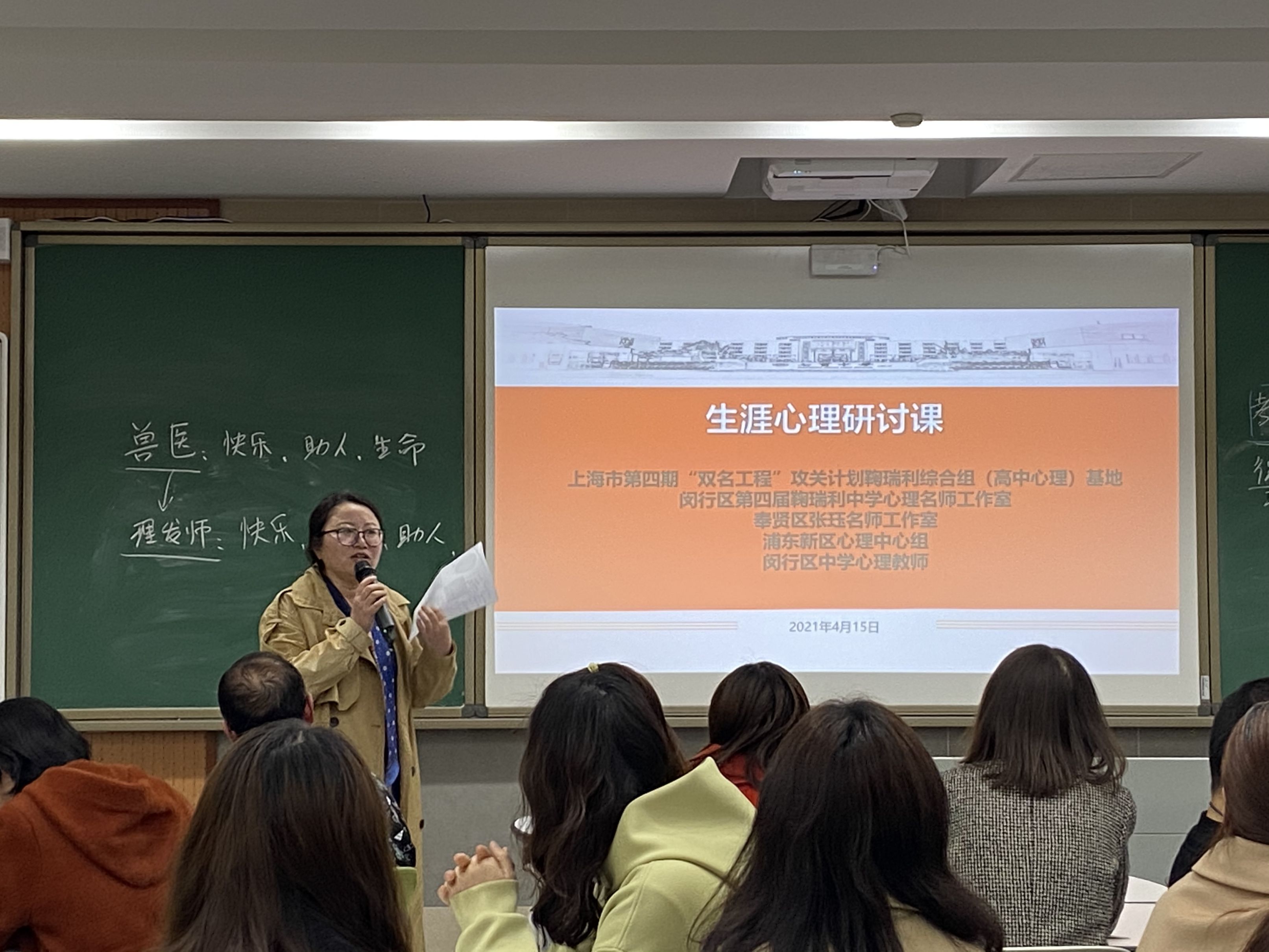 心理课堂是当前学校落实生涯教育和心理健康教育的重要阵地。为了更好地探索心理课堂中生涯教育与心理健康教育有机融合方法策略,2021年4月15日周四下午,闵行区全体中学心理教师参加了在上海市七宝中学举行心理课研讨活动,此外,上海市第四期“双名工程”攻关计划鞠瑞利综合组(高中心理)基地学员、闵行区第四届鞠瑞利中学心理名师工作室学员、奉贤区张珏名师工作室学员、浦东新区心理中心组部分青年教师参加本次活动。