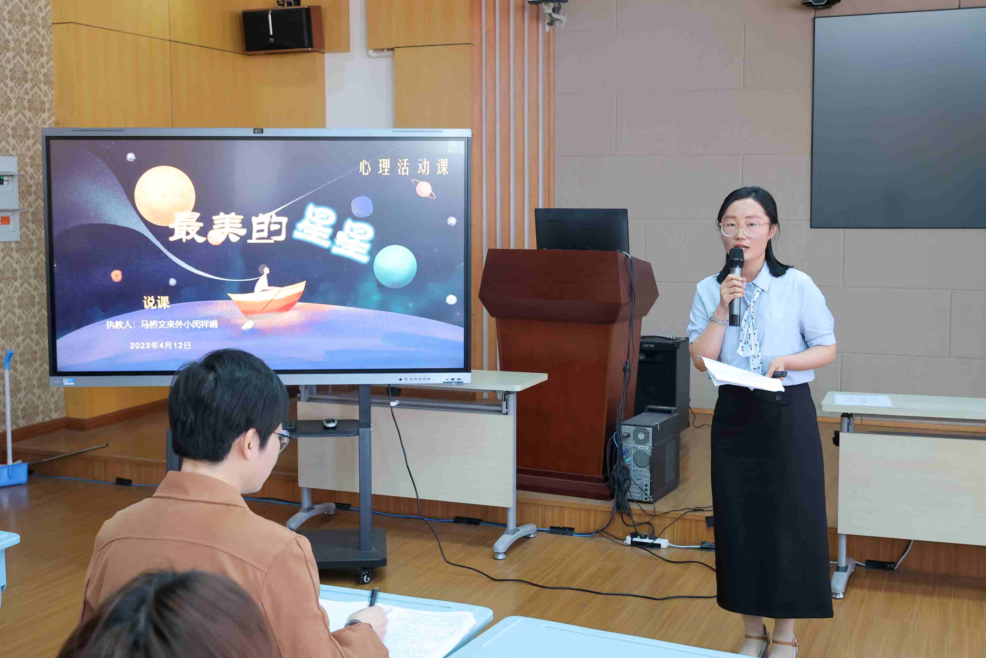 活动开始,来自文来外小的闵祥娟老师和闵行区实验小学的贝文铮老师分别执教了四年级《最美的星星》和二年级《上课小妙招》两节心理课。闵老师以《小星星》的手势舞为导入,引出在同伴交往中赞美的重要性,带领学生一起探索真正的赞美应具有怎样的特点,课堂上,我们看到了一名心理教师对教材解析的个性思考和深入研究学生需求的兢兢业业;贝老师以游戏“一起数一数”串起整堂课,让学生在游戏中体会上课时的规则,在贝老师的课堂上,我们看见了一名教态亲切自然的年轻教师教育智慧的闪现。课后,两位心理老师进行了说课,参加教研的老师们在徐老师的组织下进行了线上线下结合的研讨,老师们赞叹两位老师的用心,看到每节课反复打磨的不易,也学习到以积极的视角看课堂,也给两位老师提出了中肯的改进意见。