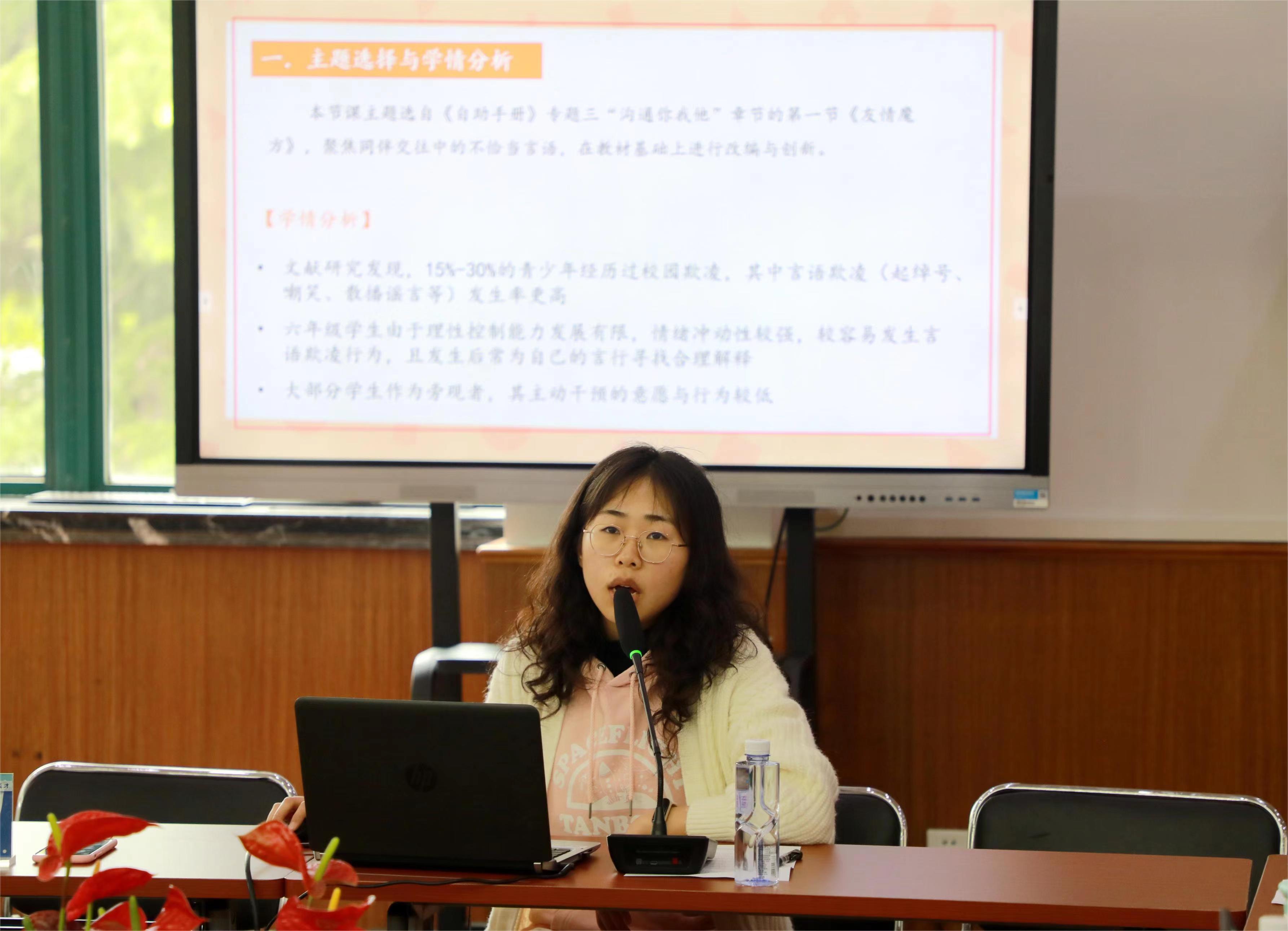 最后,教研员陈滢老师依次点评了每位教师的说课。陈老师首先给予说课教师肯定和鼓励,根据目前学生成长中的困惑和心理需求,同时说课前做的大量调研和准备,让选题更加契合时下学生的真实需要,并指出每节课的闪光点和创新的做法,鼓励老师多理论联系实践,灵活运用技术,包括心理技术、信息技术的运用,多做尝试。同时,陈老师针对教师们的困惑和难点给出了操作性的建议。陈老师表示后续还会给每位老师组建一个磨课的团队,安排相应的指导老师,为老师们开出高质量的公开课给到最有力的支撑。虽然心理活动课目前没有统一课标,但是在体验中感悟,让学生在课堂上有收获,解决一部分学生的困惑,是我们每一位心理教师对于教学的坚守。