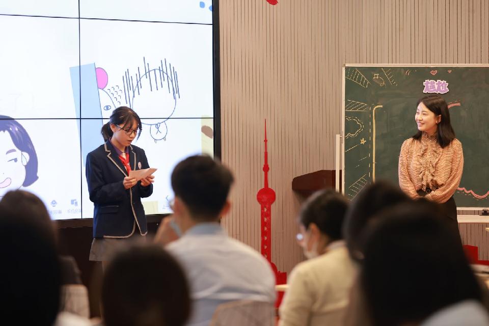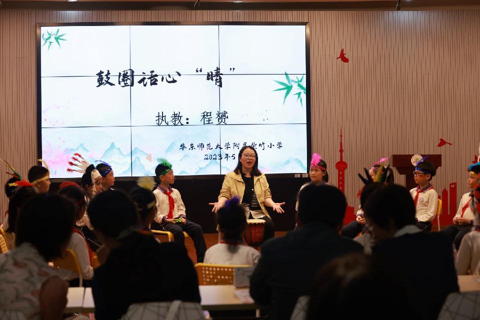 内场展示交流活动中,首先是华东师范大学附属紫竹小学张计蕾校长致欢迎辞并以《心遇美好,“晴”满校园》介绍新时代学校心理健康教育实践。张勤凤副校长以《紫儿好心情,生命更灵动》分享了课题引领下的学校情绪管理特色课程建设。随后,心理老师单文君展示了情绪管理课《尴尬,笑一笑》,心理辅导员程赟老师开展了团辅活动《鼓圈话心“晴”》。区心理名师培养基地主持人鞠瑞利对两节课进行了专业点评,老师们同步进行了线上教研互动。