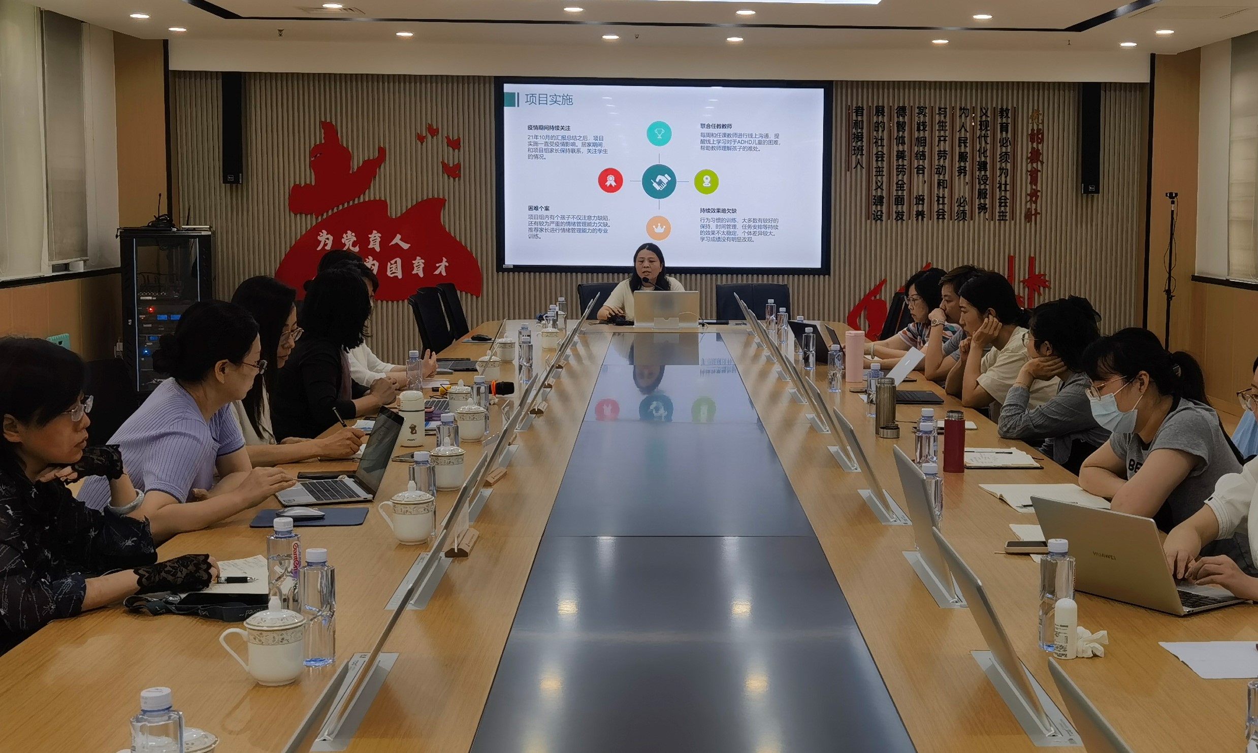 儿科医院的朱主任和文竹医生首先回顾了自2016年闵行区医教结合ADHD项目以来,从组织技能训练的医教双方配合提高疗效,到目前平台建设后便捷的医教双方信息互通、绿色通道转诊等功能的完善。从几所实验学校转诊来的学生和家长提出的对ADHD儿童的情绪管理、社会交往的进一步指导的需求出发,将进一步拓展医教结合的深入融合,开展两方面能力的专项小团体辅导和针对家长的支持性团体。优化平台功能,向更多闵行区学校提供便捷及时的支持;可以增加一些实验学校的服务功能,以点带面,关注心理健康资源薄弱及ADHD问题比较集中的学校。随后几所实验学校交流了过去一年中,特别围绕疫情期间及疫情后,医教结合项目指导下开展的一些工作和探索。实验小学通过针对ADHD儿童流畅的工作机制运行和对班主任实际绩效支持的举措,江川路小学结合线上线下形式开展ADHD家长支持性团体的延续,明强二小通过教师培训进行全员宣传和ADHD项目开展的后续跟踪辅导。实验学校在项目中生发出的智慧和经验,让参加研讨的学校和老师都深受启发。陈滢老师结合市级项目《全员导师制背景下ADHD儿童发展性指导教师课程的开发和应用研究》阐述了课程开发基于闵行区目前小学心理健康教育中教师对于ADHD儿童及一些外化行为问题无从下手,缺乏知识储备等痛点难点的背景,结合儿科医院今年项目深入,联合几所实验学校共同进行课程的开发,力求建设结构化,分层、实用性强的教师培训课程。为了使培训课程更加贴近一线教师的需求,将进行课程培训需求的调研,调研工作将选取4所实验学校和5所非实验学校中进行,后续细致分析后,依据科学性和实证支持进行系统课程开发。