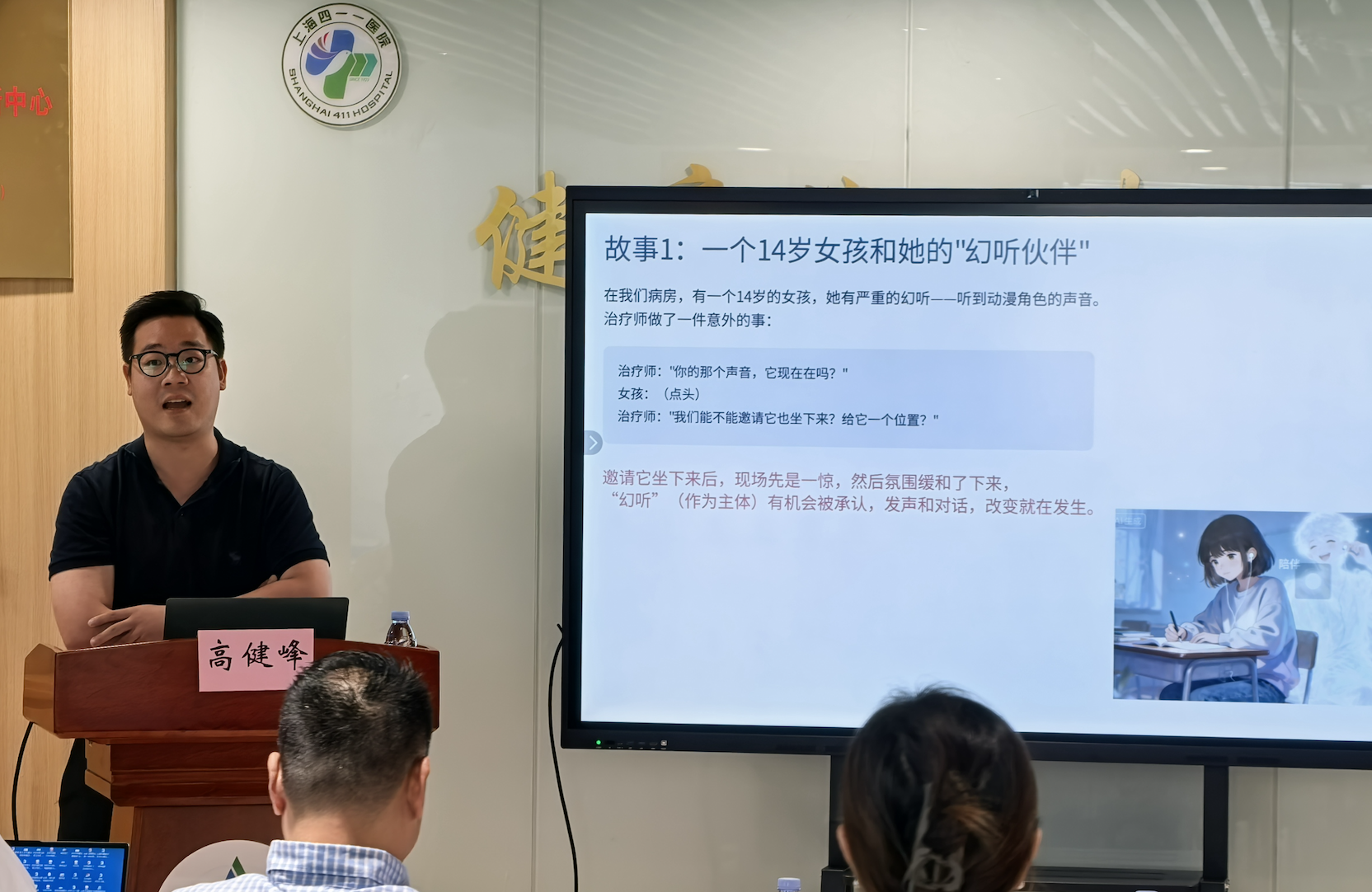 随后,家庭社会学家计迎春围绕 “马赛克家庭主义和新型亲子关系” 展开分享,进一步聚焦“江浙沪独生女的母女关系”这一议题,从社会学角度更为广阔的视角为教师们解析家庭环境对亲子关系与心理成长的影响;同济大学附属精神卫生中心专家高健峰以 “声音的力量:开放对话模式在儿少心理门诊及病房的应用、推广及研究” 为主题,提供临床干预和青少年心理咨询的新视角;静安区精神卫生中心儿少精神科主任胡海萍则聚焦 “医 - 教 - 心” 深度融合的多学科诊疗(MDT)门诊服务模式,为跨领域协作解决学生心理问题提供思路。